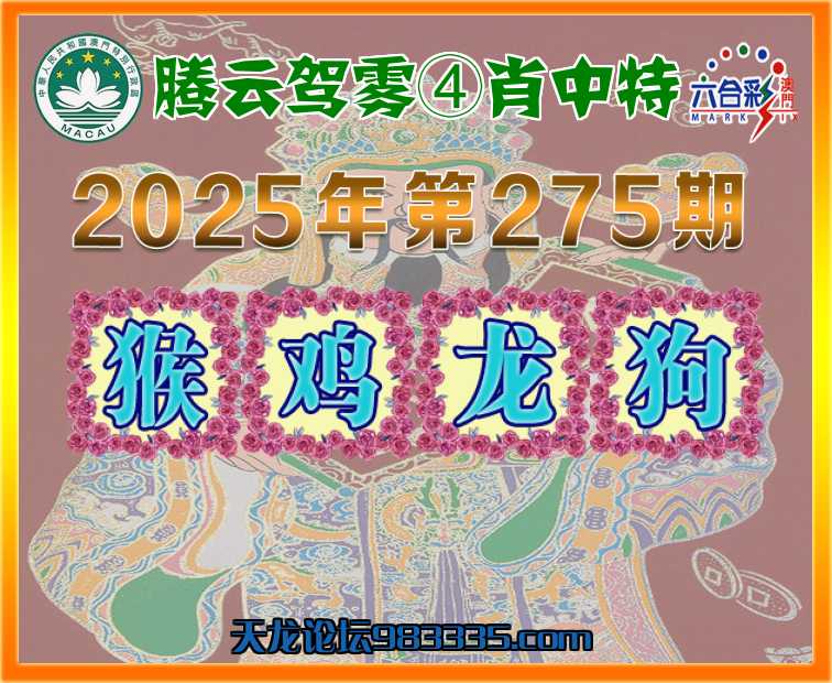 275期:【腾云驾雾】 ♥️④肖中特♥️【猴..龙.狗】开:鸡45
