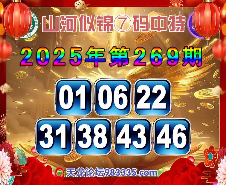 269期:『山河似锦』 🥰⑦码中特🥰【01.06.22.31.38.43.46】开:31