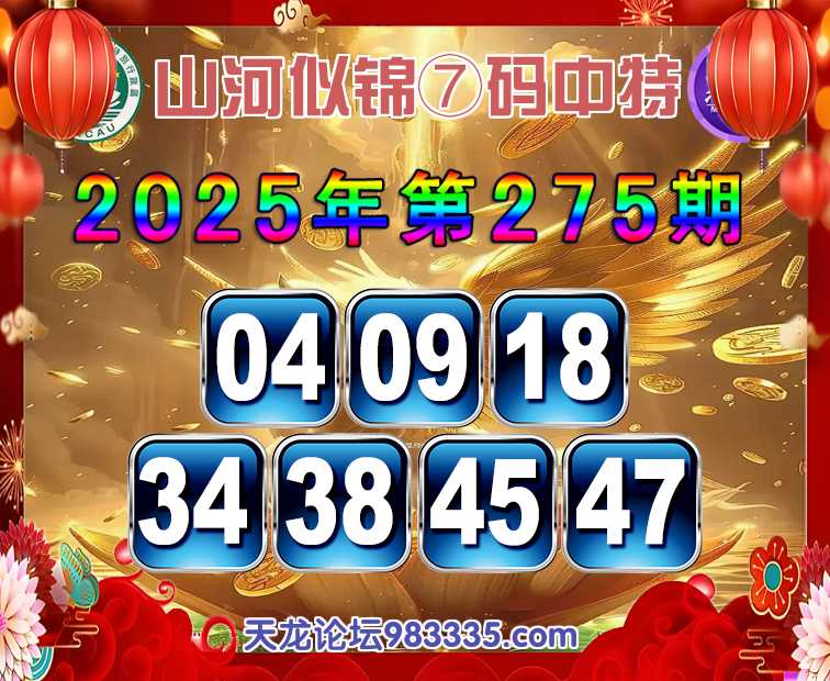 275期:『山河似锦』 🥰⑦码中特🥰【04.09.18.34.38.45.47】开:45