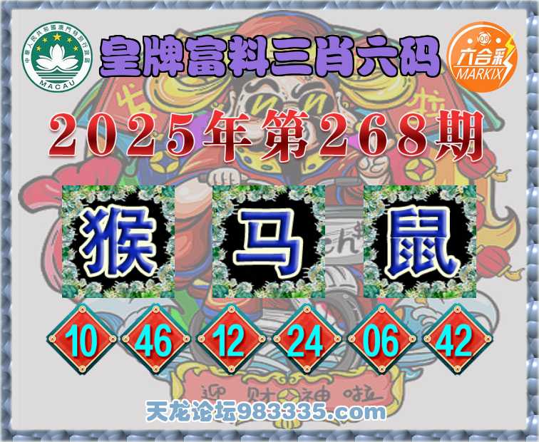 268期:【皇牌富料】 👘三肖六码👘【马鼠】开:猴10