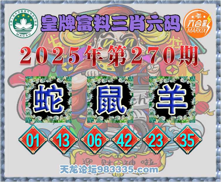 270期:【皇牌富料】 👘三肖六码👘【蛇鼠】开:羊35