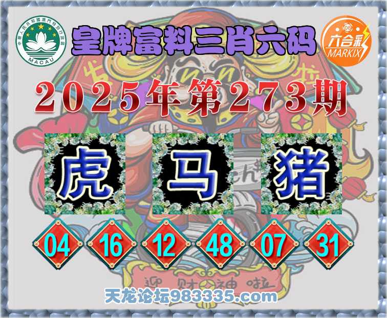 273期:【皇牌富料】 👘三肖六码👘【马猪】开:虎04