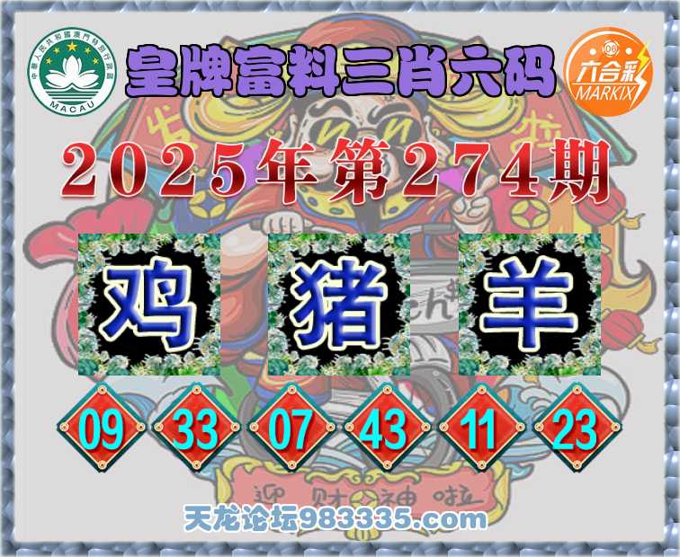 274期:【皇牌富料】 👘三肖六码👘【鸡猪羊】开:狗44