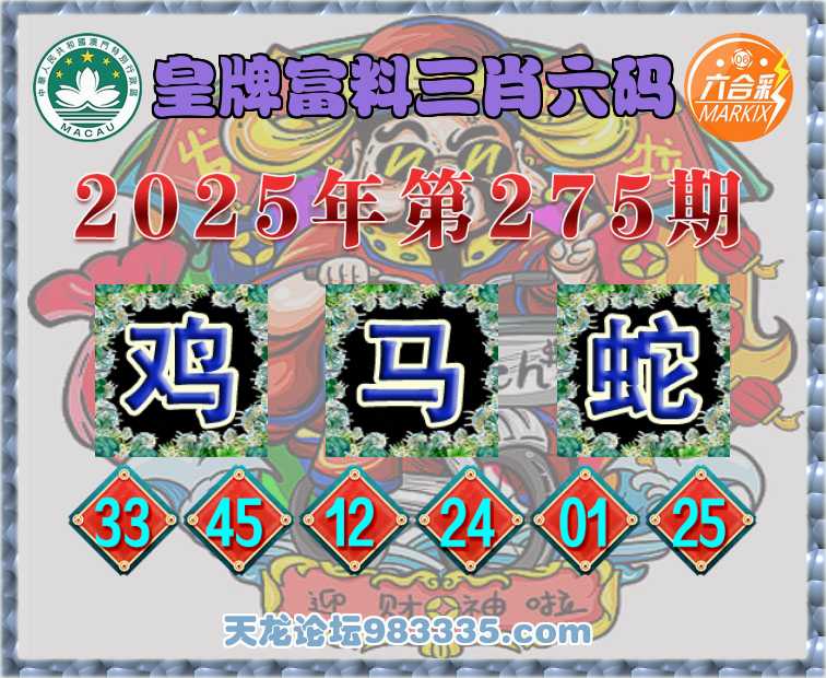 275期:【皇牌富料】 👘三肖六码👘【马蛇】开:鸡45