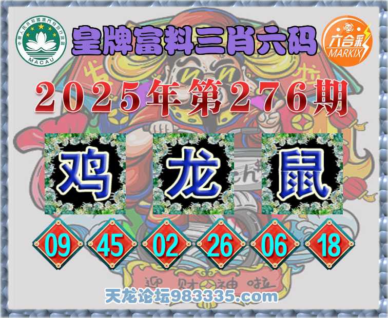276期:【皇牌富料】 👘三肖六码👘【龙鼠】开:鸡09