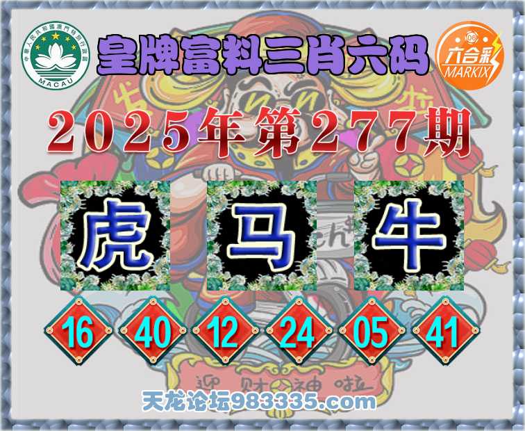 277期:【皇牌富料】 👘三肖六码👘【马牛】开:虎16