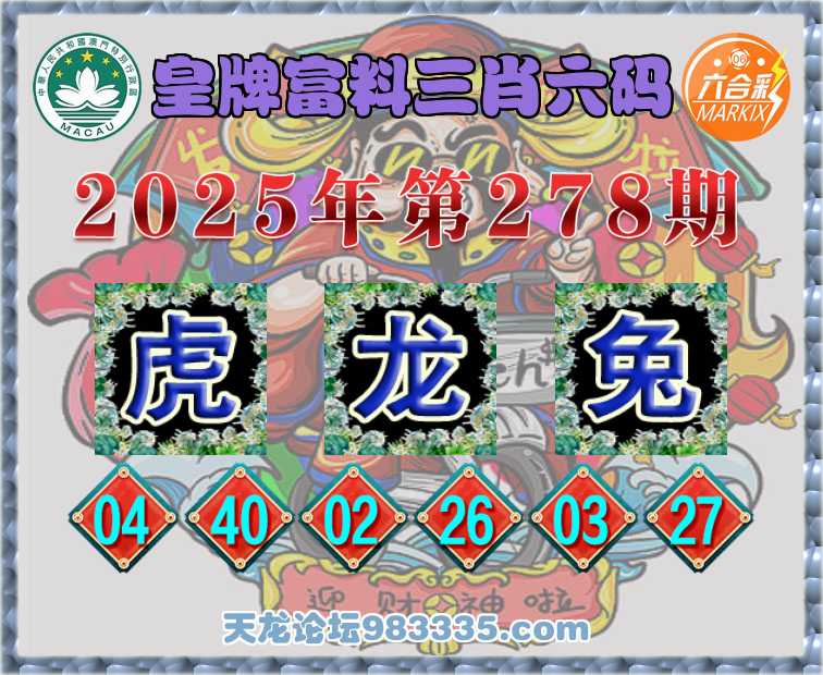 278期:【皇牌富料】 👘三肖六码👘【龙兔】开:虎28