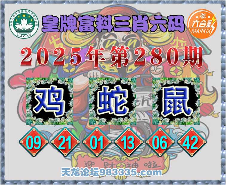 280期:【皇牌富料】 👘三肖六码👘【鸡蛇】开:鼠42