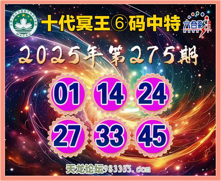 275期:【十代冥王】 🍧⑥码中特🍧【01.14.24.27.33.45】开:45