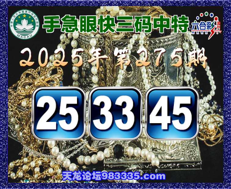 275期:『手急眼快』 ✌️三码中特✌️【25.33.45】开:45