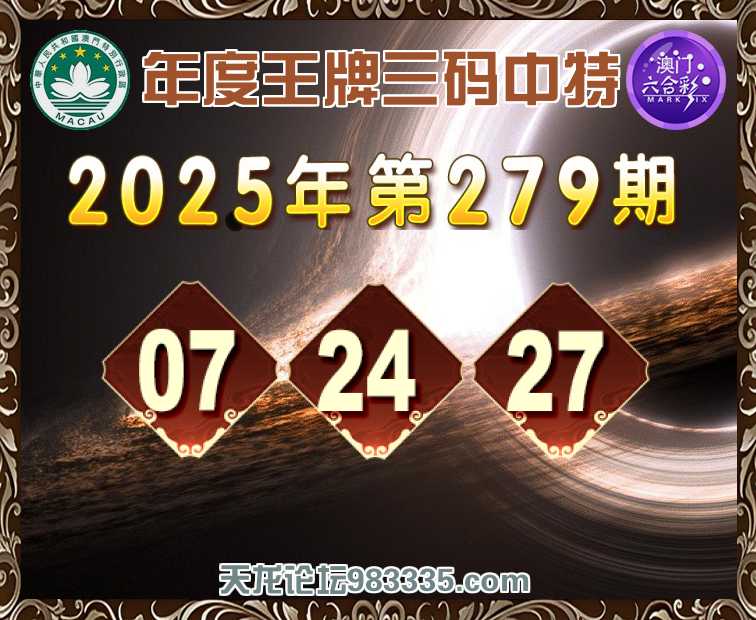 279期:『年度王牌』 🥠三码中特🥠【07.24.27】开:27