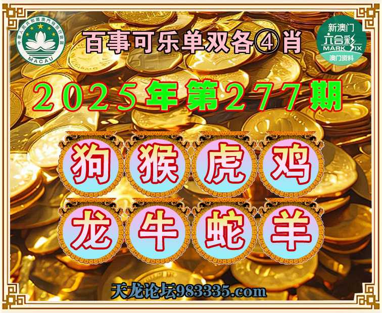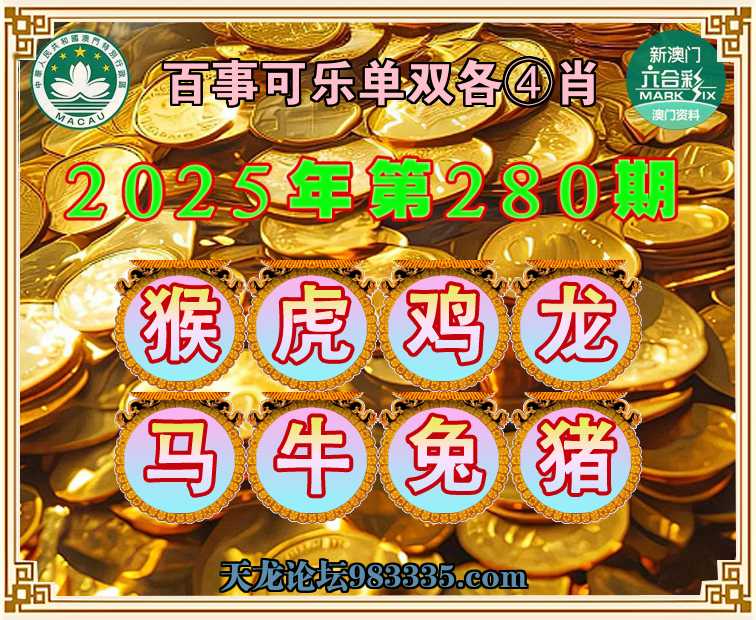 281期:天龍论坛《百事可乐》《单双各④肖》大胆下注