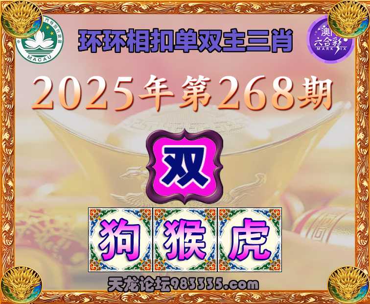 268期: ✌️『环环相扣』 ✌️单双主三肖✌️【-狗虎】开:猴10