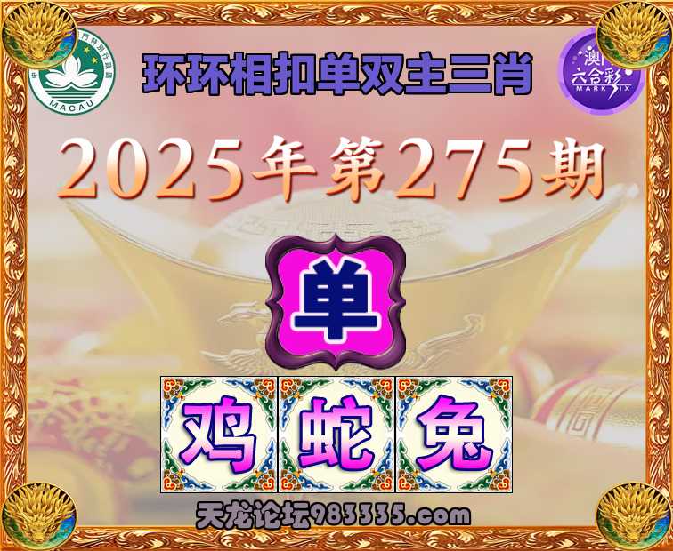 281期:天龍论坛《环环相扣》《单双主三肖》完美中奖