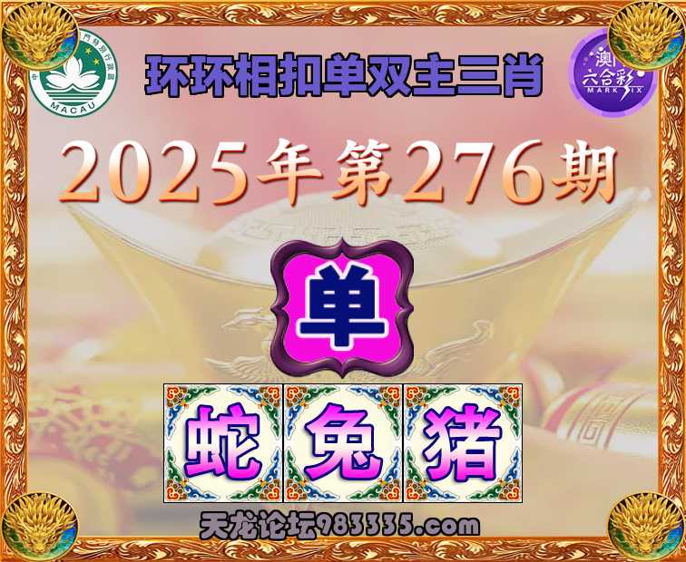 276期: ✌️『环环相扣』 ✌️单双主三肖✌️【-蛇兔猪】开:09