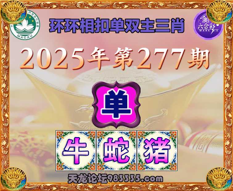 277期: ✌️『环环相扣』 ✌️单双主三肖✌️【单-牛蛇猪】开:虎16