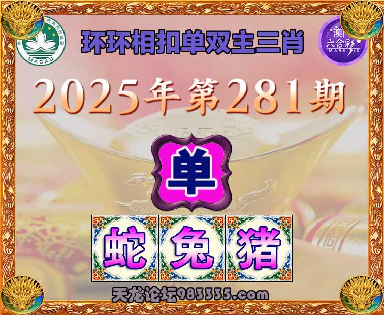 281期: ✌️『环环相扣』 ✌️单双主三肖✌️【单-蛇兔猪】开:00准