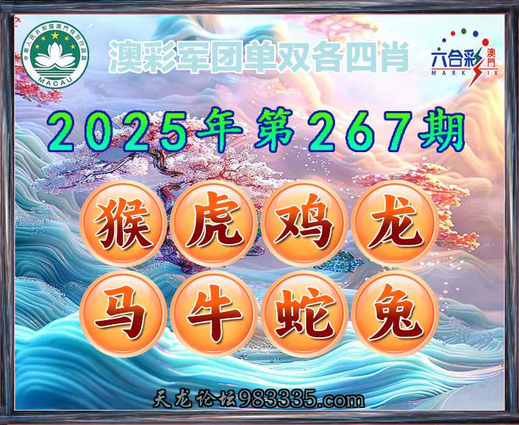 268期:《澳彩军团》 🍟单双各四肖🍟开:猴10