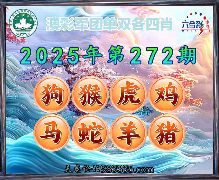 273期:《澳彩军团》 🍟单双各四肖🍟开:虎04