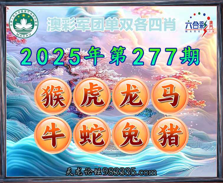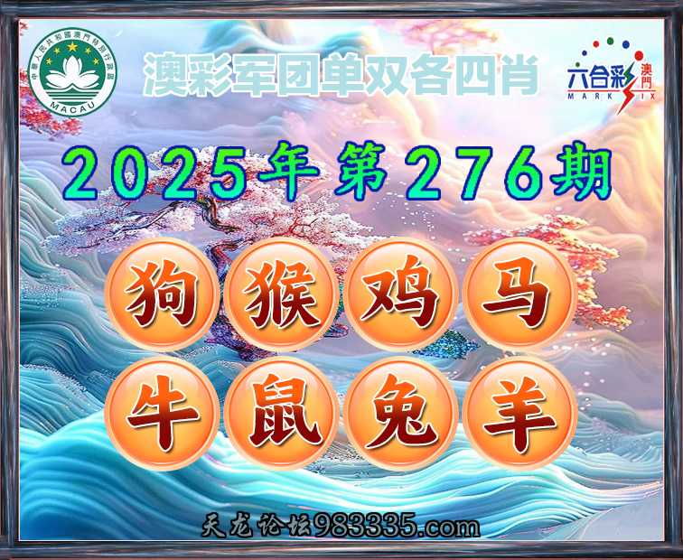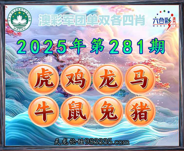 281期:天龍论坛《澳彩军团》《单双各四肖》专业抓码