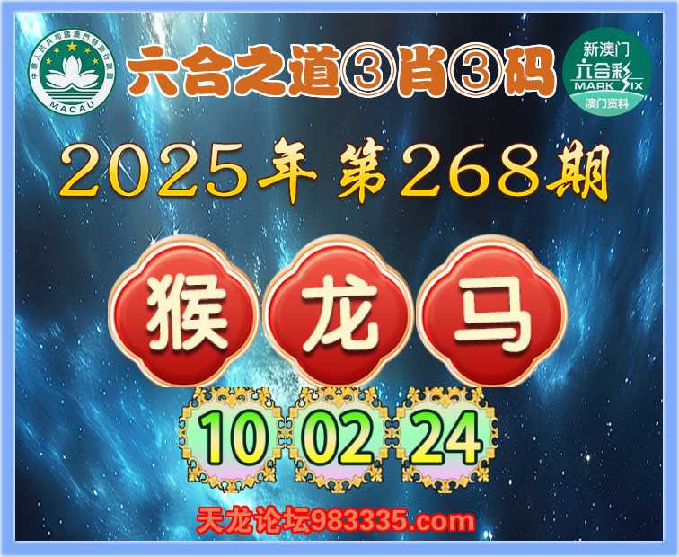 268期: 🍖《六合之道》 🍖③肖③码🍖【龙马】【10.02.24】开:猴10